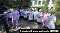 Ошондой эле акцияга чыккан дарыгерлер министр балдар бейтапканасын чоңдордун ооруканасына кошуу планы тууралуу айтканын, андай болсо жашыл аймак кыскарып кетерин кошумчалашты.