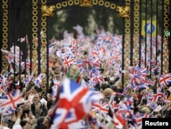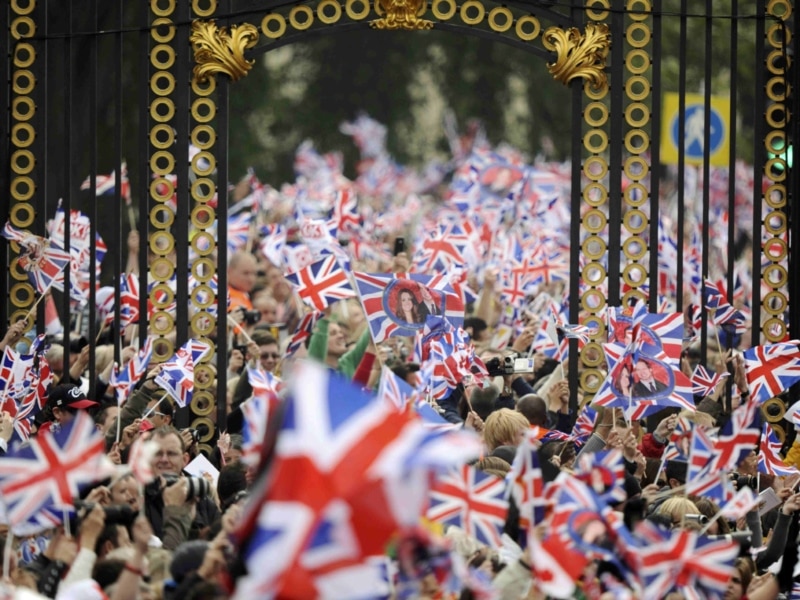 Бэкингем сарайынын жанында котологон калайык. Лондон. 2011-жылдын 29-апрели.