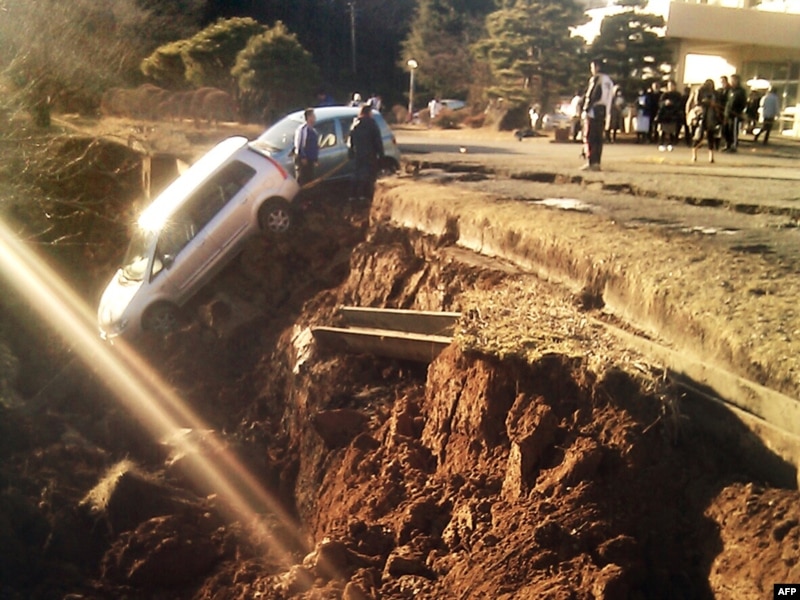 Жапониянын Фукусима жергесинде Йабуки шаарчасындагы бир унаалар паркынын топон суу каптаган маалдагы көрүнүшү. 2011-жылдын 11-марты. AFP.