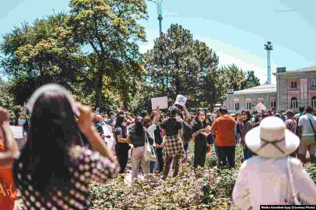 “Эркиндик!” деп чакырык таштаган митингчилер Эркиндик гүл багынан Акүйдүн алдына жөө жүрүш менен келишти.