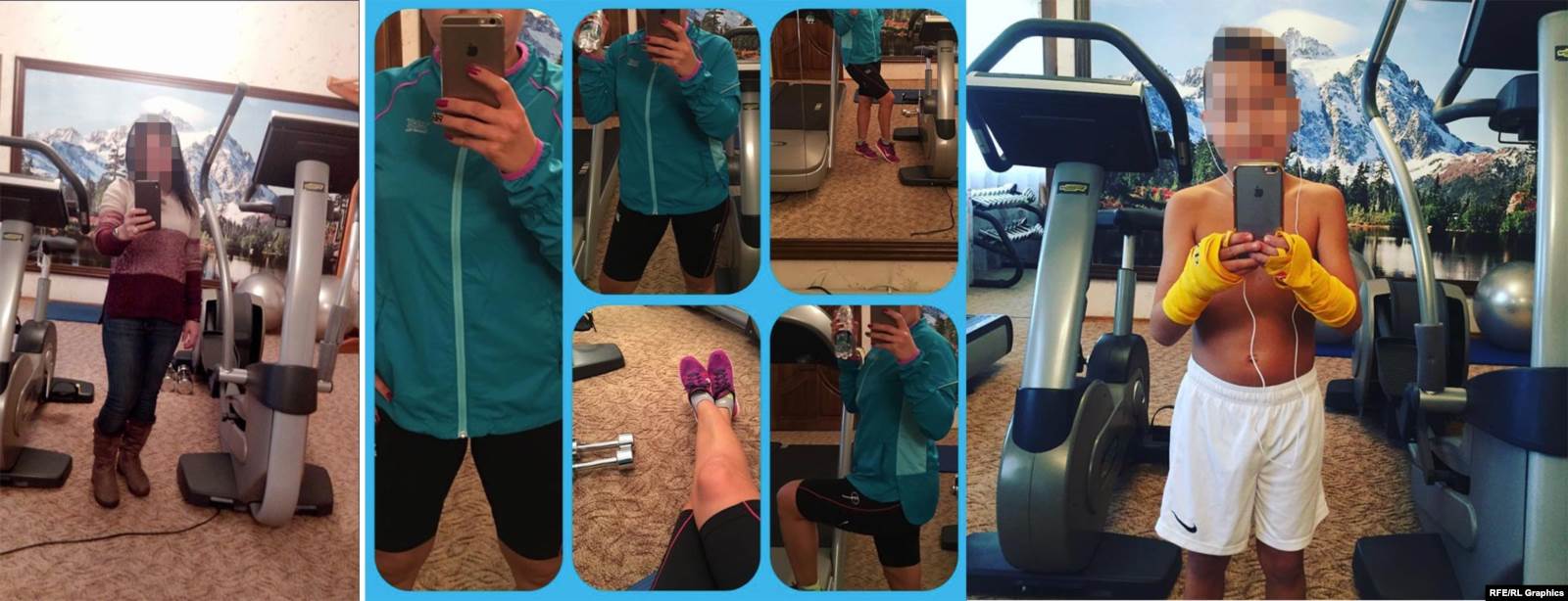 Teresita, Тургунова жана анын уулдарынын бири да ошол эле фитнес залдан сүрөт койгон. (Teresita деген колдонуучунун «Фейсбук»,  Тургунованын «Инстаграм», Матраимовдун «Инстаграм» баракчаларынан алынды. OCCRP сүрөттөрдү топтоду).