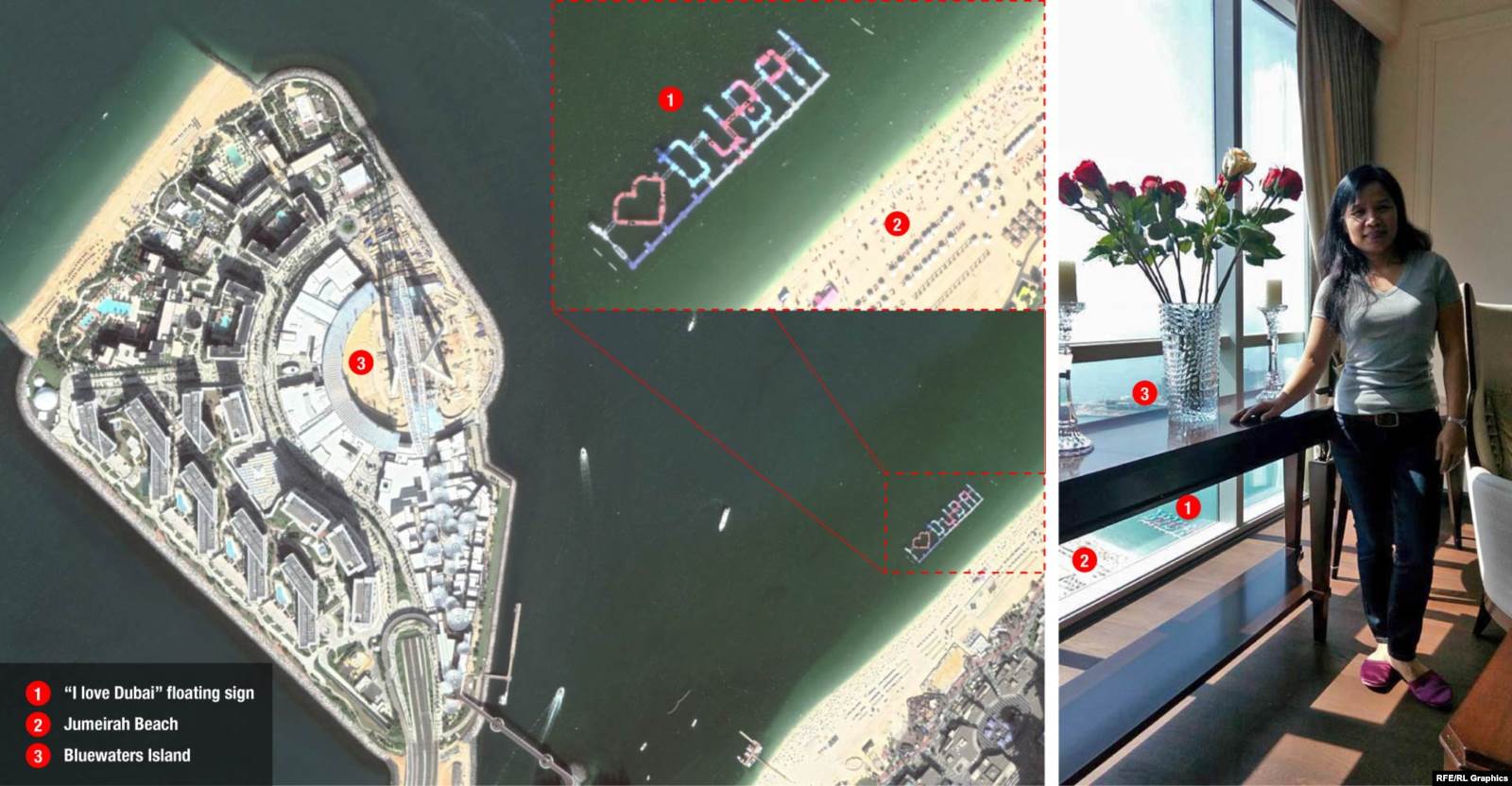Видео экскурсиядан бир күн мурдараак Teresita Дубайдагы апартаменттен түшкөн ондогон сүрөтүн «Менин кожоюнумдун үйү...» деп жарыялаган: