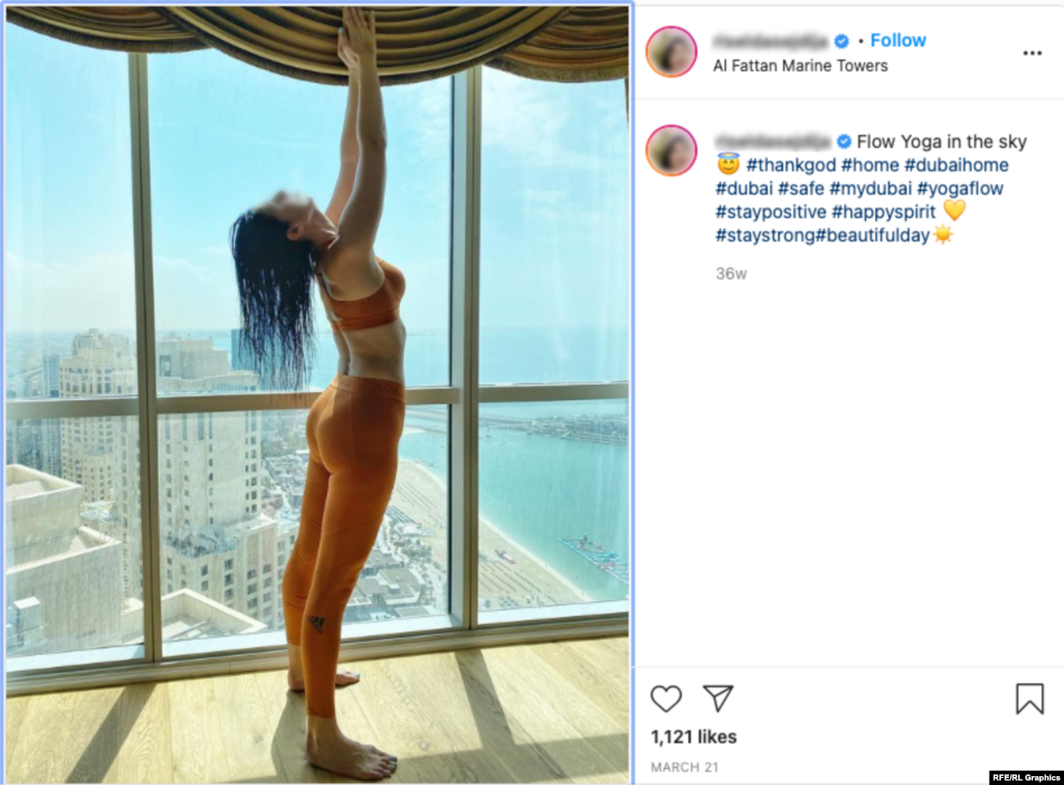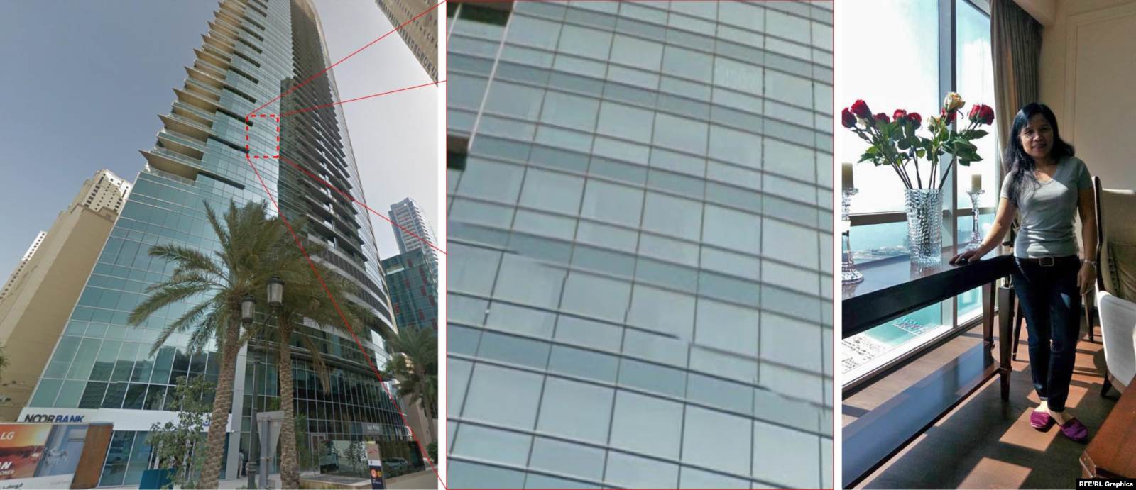 Тургунова Дубайдагы жаңы апартаментте. (Тургунованын «Фейсбуктагы» сүрөттөрүн OCCRP топтогон).